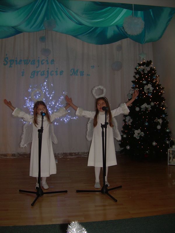 Amelka i Emilka na konkursie kolęd w Przedszkolu nr 14
