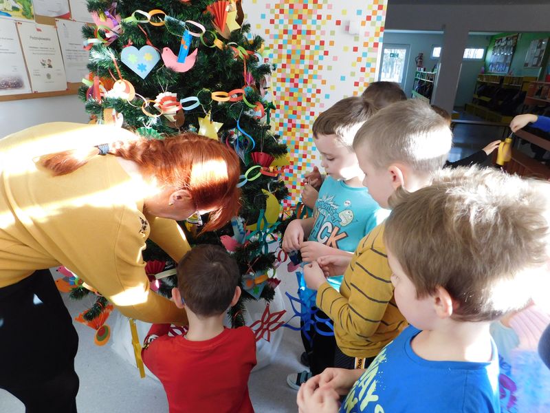 Przedszkolaki ubierają choinki